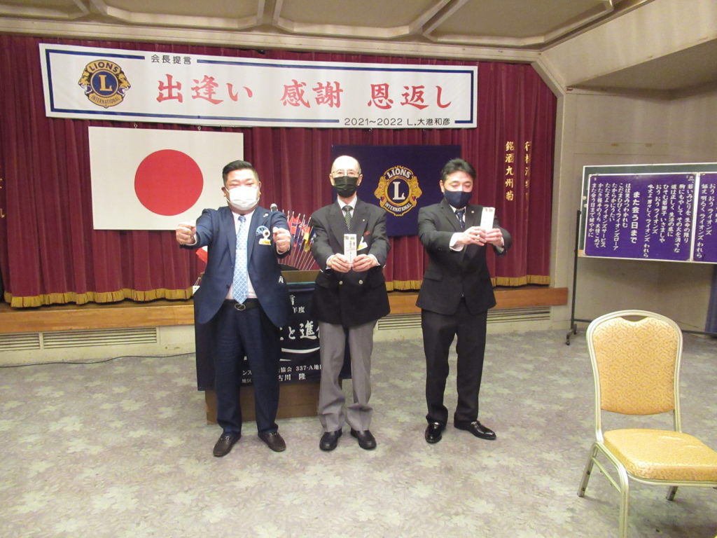 行橋ライオンズクラブの益々の発展と、会員の皆様、ご家族の皆様の健康と安全を祈願いたしました。