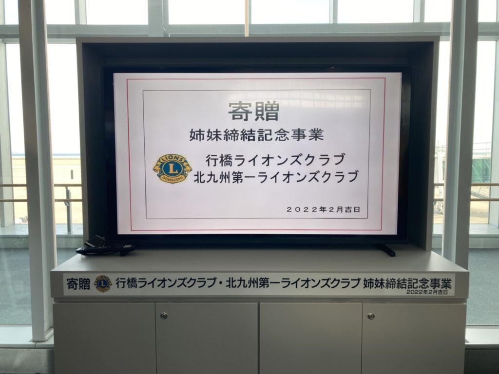 行橋ライオンズクラブ・北九州第一ライオンズクラブ姉妹締結記念事業「北九州空港贈呈式」 by 事務局 / On 2022年2月14日 福岡県立青豊高等学校書道部による書 寄贈 2022年2月3日(木)北九州空港へ「行橋ラインズクラブ・北九州第一ライオンズクラブ姉妹締結記念事業」として福岡県立青豊高等学校書道部の「書」と「テレビ・テレビ台」を寄贈いたしました 行橋ライオンズクラブ 北九州第一ライオンズクラブ テレビ・テレビ台 北九州空港をご利用の際には、高校生の素晴らしい<書>を是非ご覧ください