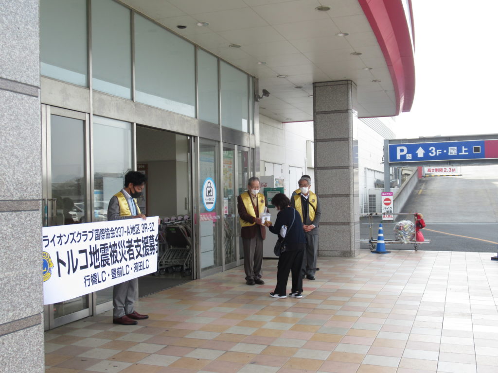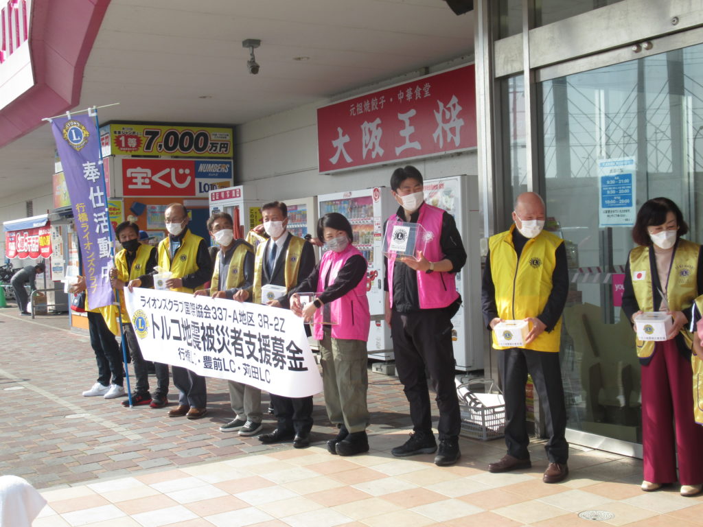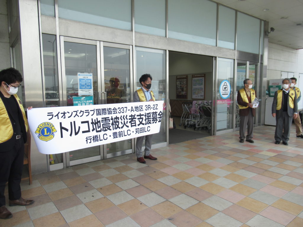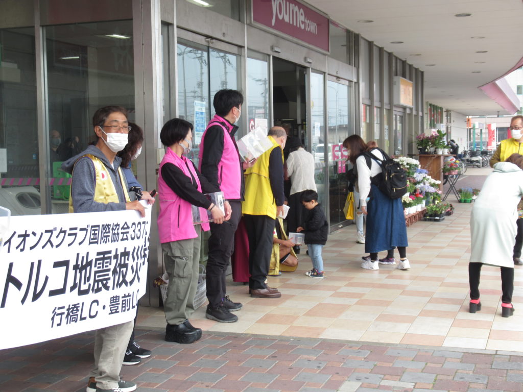 トルコ地震被災者支援募金活動 by 事務局 / On 2023年3月15日 2023年3月12日(日)10:00~13:00 ゆめタウン行橋にて 行橋ライオンズクラブ、豊前ライオンズクラブ、苅田ライオンズクラブ合同で、 トルコ地震被災者支援募金活動を行いました。 ZCあいさつ 当日は、暖かい春の日差しにお買い物のお客様も多く、小さなお子様にもたくさん募金していただきました。短い時間ではございましたが、皆様にご協力いただき予想を超える募金が集まりました。 ありがとうございました💕