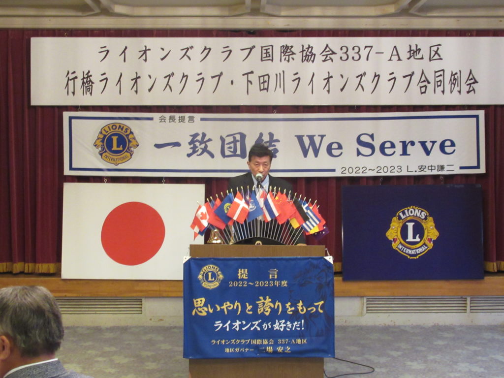 コロナ禍でなかなか合同例会を開催できませんでしたが、今年度久々に下田川ライオンズクラブ12名の皆様をお招きすることが出来ました。