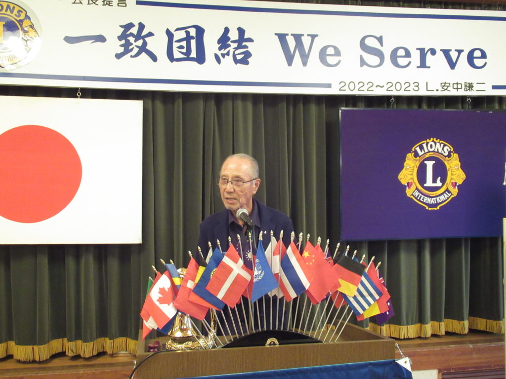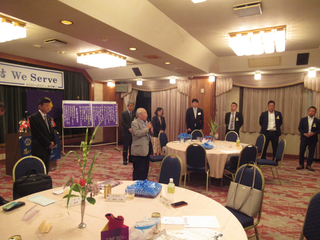 行橋LCの例会らしく、威厳ある例会で締めくくりたいと、乾杯を3R顧問にお願いしました。