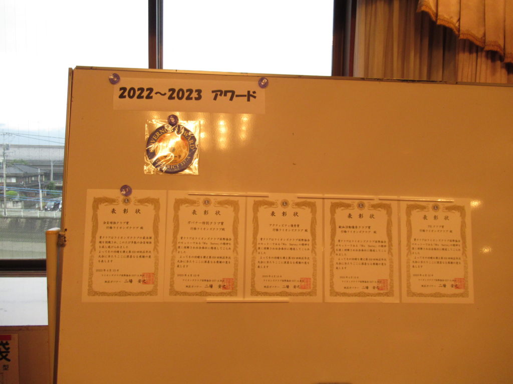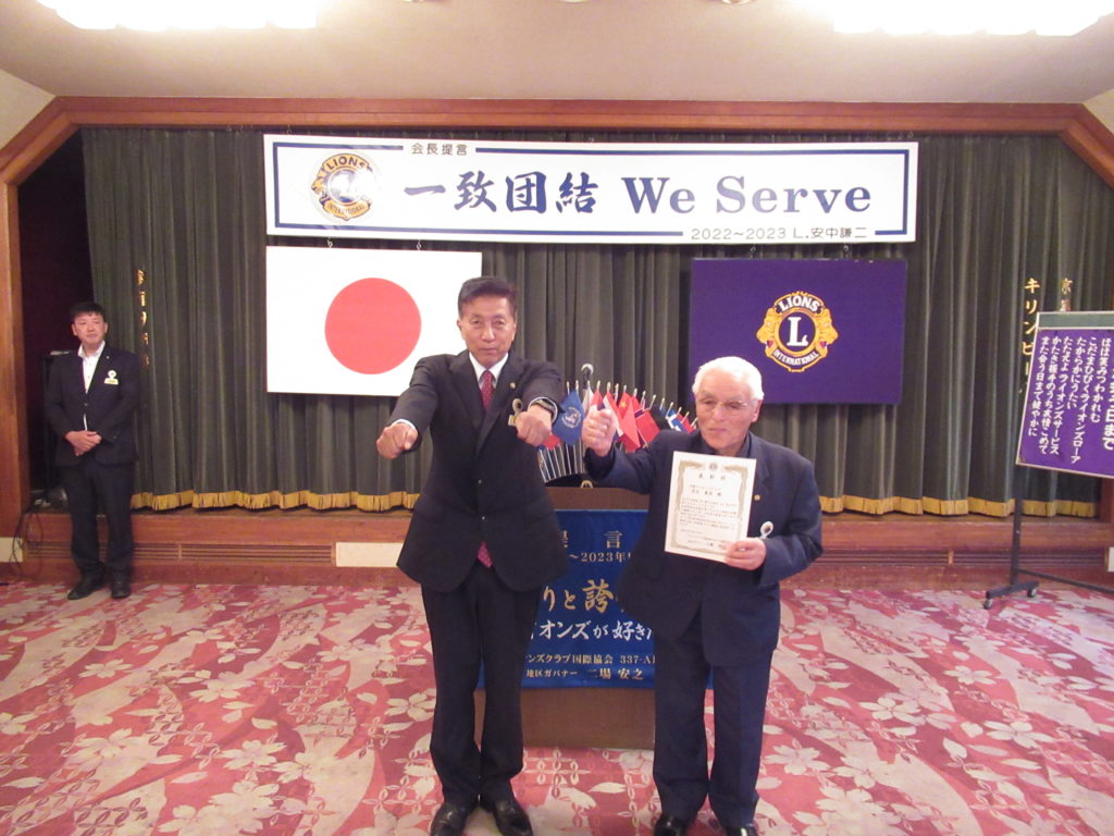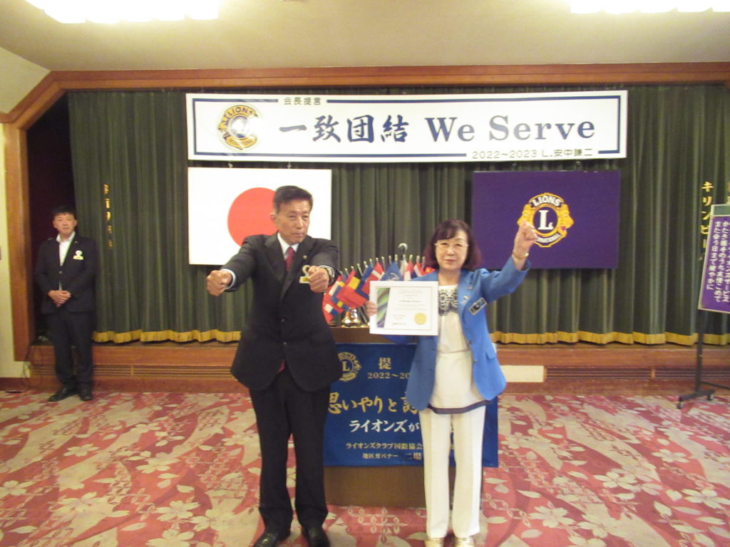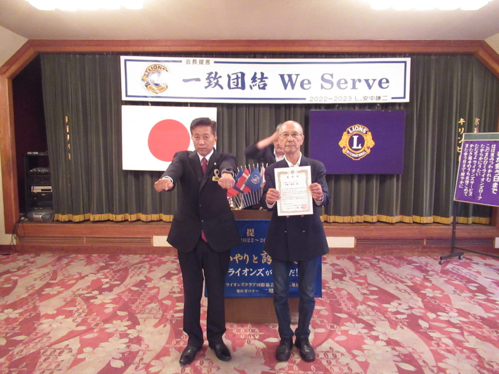 2022~2023年度 地区YCE・レオ委員長としてご活躍され、その功績に国際会長より感謝状が贈られました。