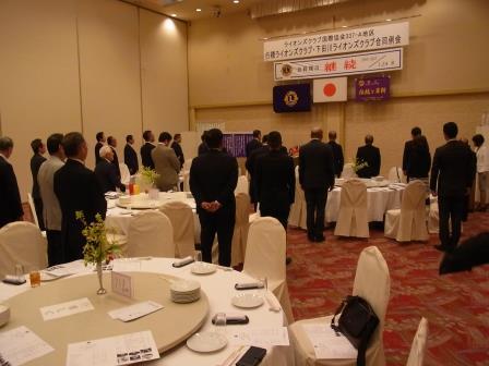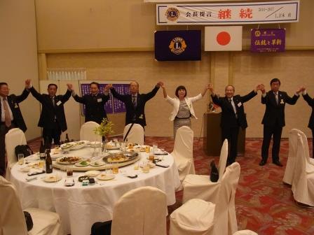 下田川LC合同例会 by 広報担当 / On 2017年5月17日 2017年5月17日(水)18:30~京都ホテルにて「行橋ライオンズクラブ・下田川ライオンズクラブ合同例会」を開催いたしました 年に1度、合同例会をしていますが、今年度は行橋での開催でした 下田川LCより大勢の皆さんにお越しいただきました楽しい例会に、会話もお酒も 進み、時間の経つのがあっという間です~~ 次期RCによる「ローア」 次年度は、田川でお会いしましょう~