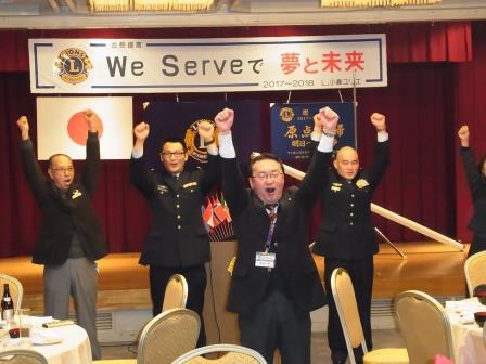 2月第一例会開催 by 広報担当 / On 2018年2月7日 2018年2月7日(水)18:30~京都ホテルにて、2月第一例会を開催いたしました 雪が積もった寒い 日でしたが、大勢の方が出席して下さいました また田川LCから4名の方が例会訪問で参加です(^-^)/ ライオンズの誓い 直前会長です 2月生まれの方 お誕生日おめでとうございます 卓話 今日は、卓話講師に航空自衛隊築城基地司令佐藤様をお迎えしました色々なお話を、楽しく、解りやすくお話頂きました 乾杯 田川LC会長にビシッと決めて頂きました ローア 田川LC幹事元気なローアです自衛隊の方や、田川LCの方と和やかに楽しい例会でした