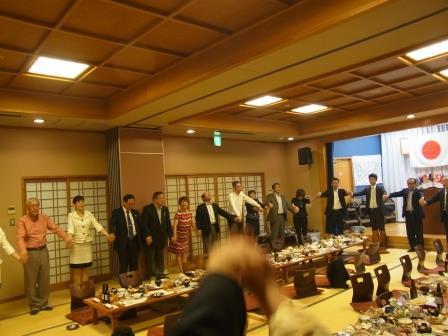 下田川LC合同例会 by 広報担当 / On 2018年5月16日 2018年5月16日(水)18:30~日王の湯にて、下田川LCと合同例会を行いました 毎年、お互いの例会を訪問して合同例会を行っています今年は、下田川LCで合同例会でした 乾 杯 3R顧問の乾杯で楽しい懇親会 が始まり、 和気あいあいあい話が弾みました また会う日まで ライオンズローア 3R顧問の計らいで、両クラブ次期会長も壇上に上がり、次年度へ向けて力を込めて「ウォウォウォ」次年度は行橋でお会いしましょう